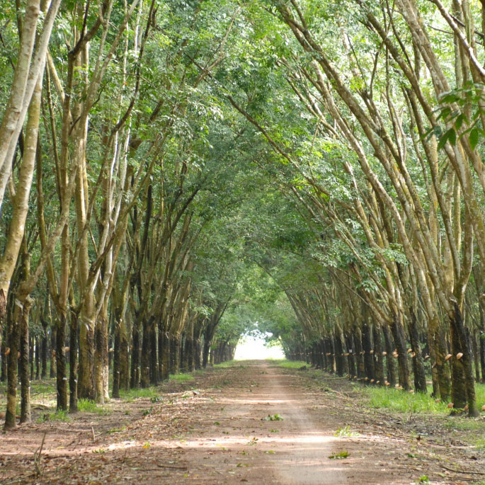 L’arbre hévéa est cultivé dans les grandes plantations tropicales d’Asie.