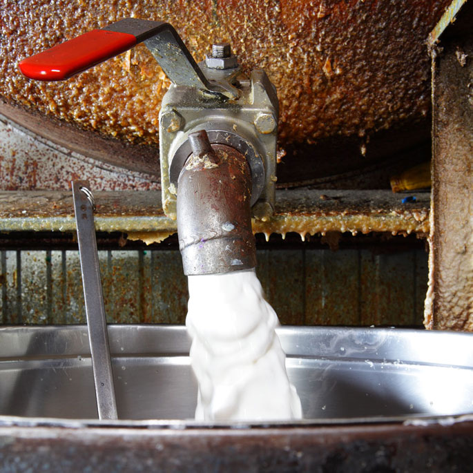 - Coulage du lait dans les moules