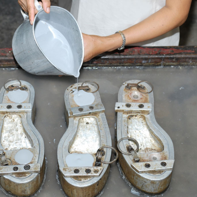Par un process unique au monde, la fabrication de la semelle LACTAE HEVEA® est similaire à la méthode d’affinage réservée aux produits laitiers :